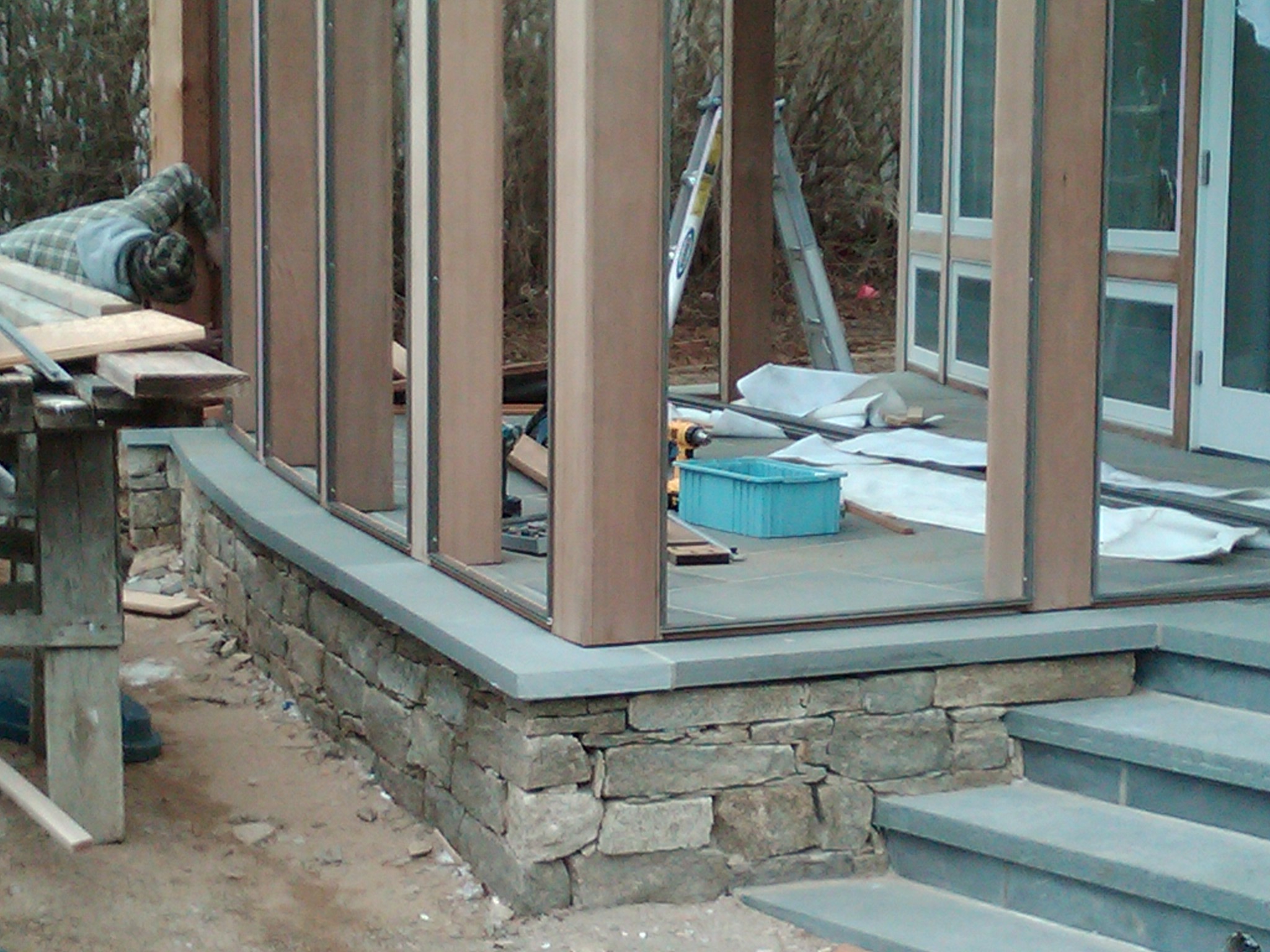 Shown below: Brick floor installation (left), Blue stone floor installation (center), Blue stone & brick floor installation (right).