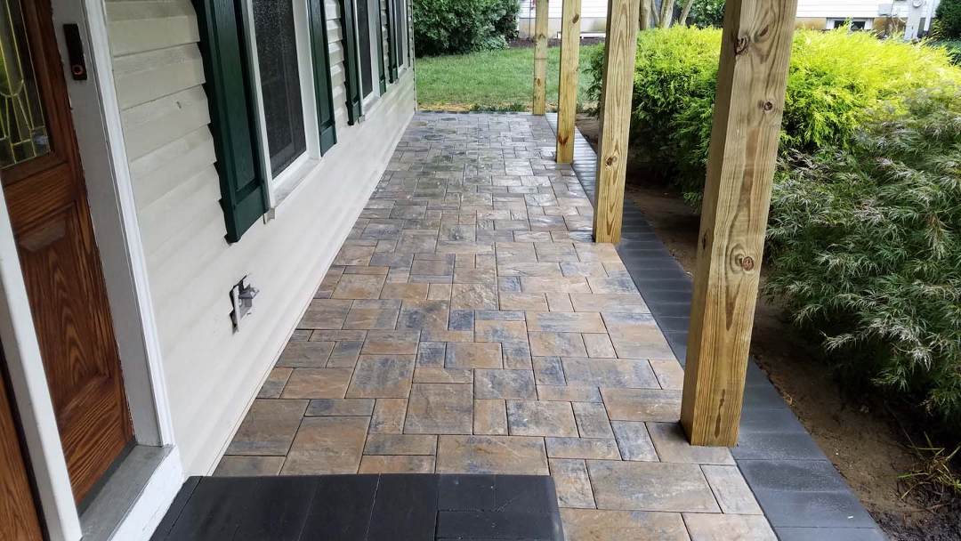 The most common material used for flooring in a typical raised residential porch is ordinarily wood or newer composite type materials. Cost, ease of installation, and material choices are 3 big reasons why. Concrete has always been the most used flooring material for ground level porches. Concrete is easy to install and, if installed correctly, will last a lifetime. The big trend over the last several years is to cover concrete with tile, block, stone, or brick. Another less expensive trend is stamped concrete - which will resemble stone, block, etc. And yet another trend is to build a free standing roof structure and use concrete pavers for the floor. SNAPP screen Track installation into all these situations is very simple but each is managed slightly different. |