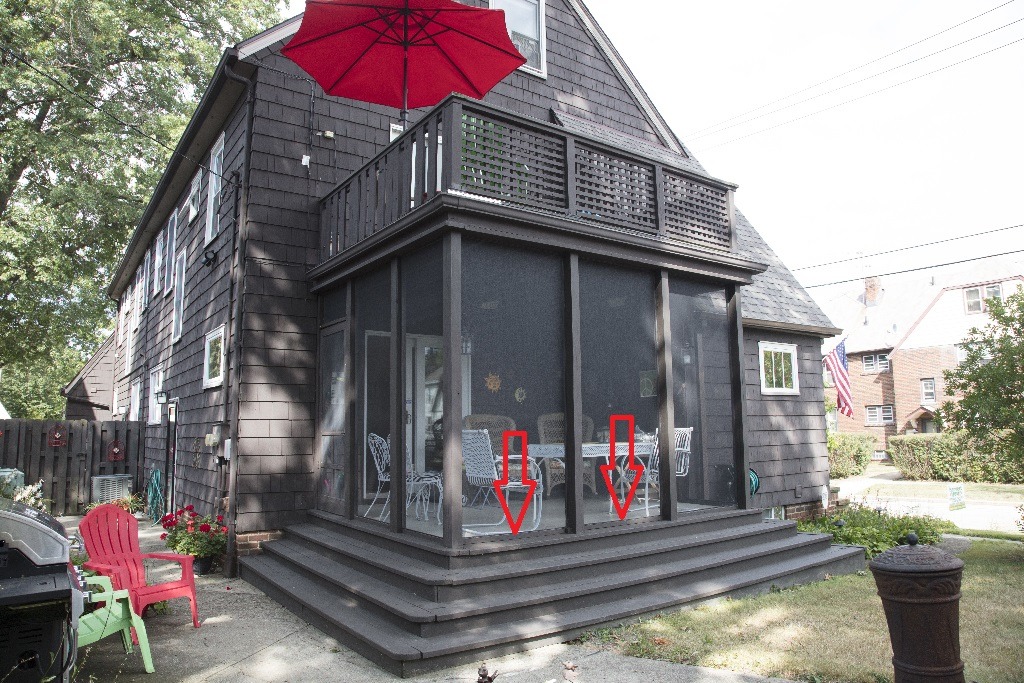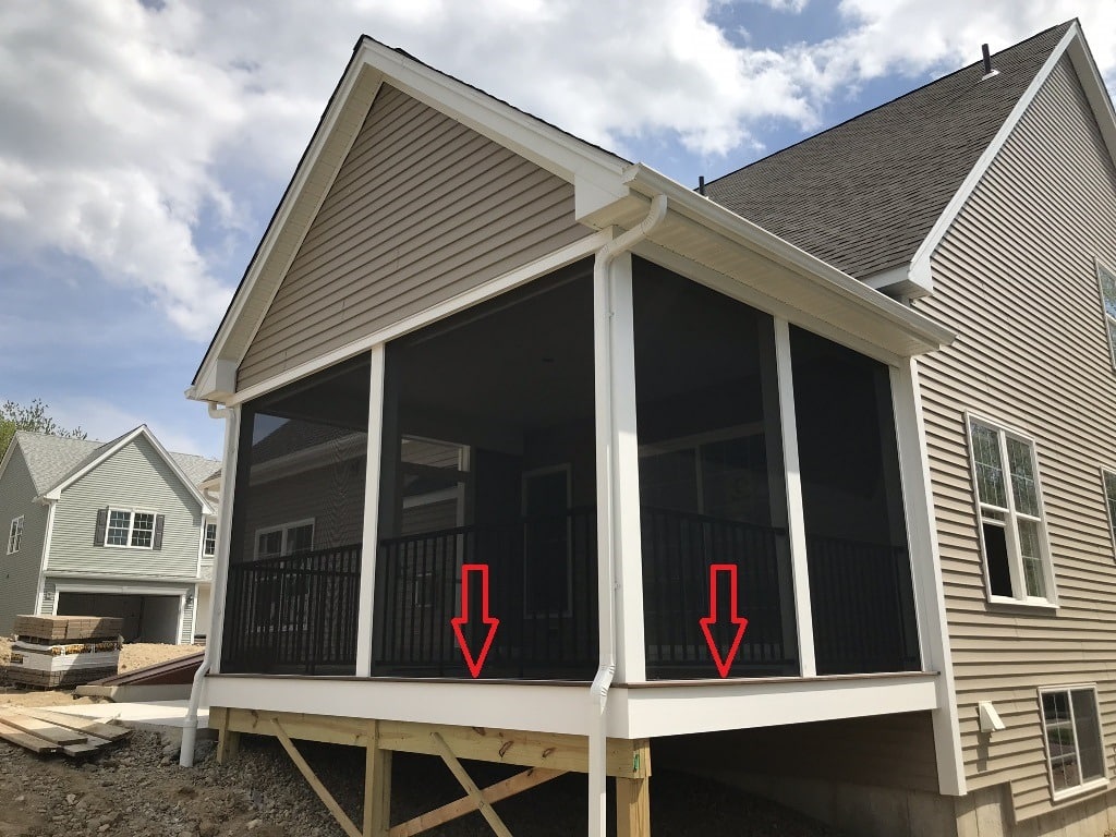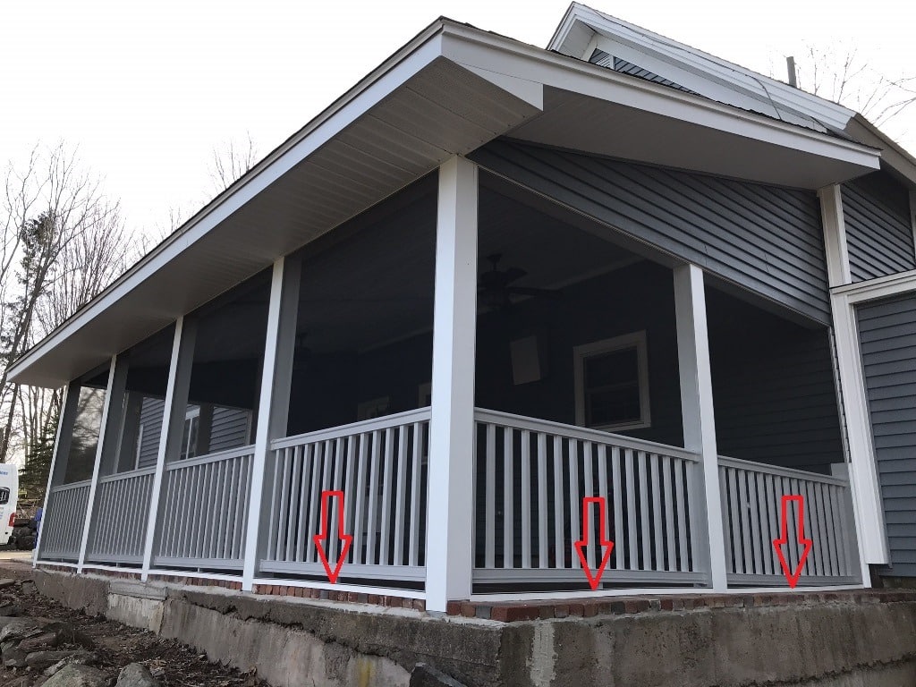 The three porches shown below all have wood or composite flooring. In each installation, the base SNAPP screen Tracks were installed directly to the flooring material. This is most common installation method used for base Track installations.